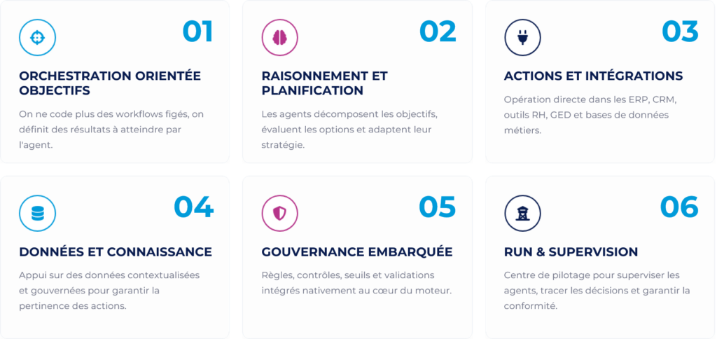 « La capacité à piloter un processus métier complet par objectifs, avec des agents spécialisés interconnectés et supervisés par l’humain. »